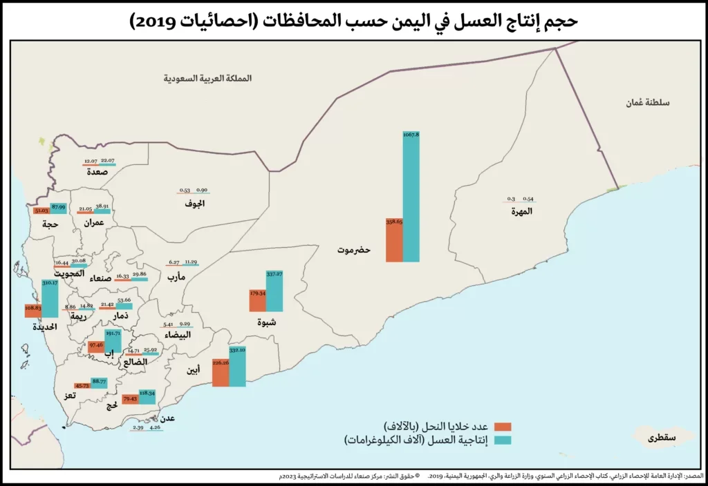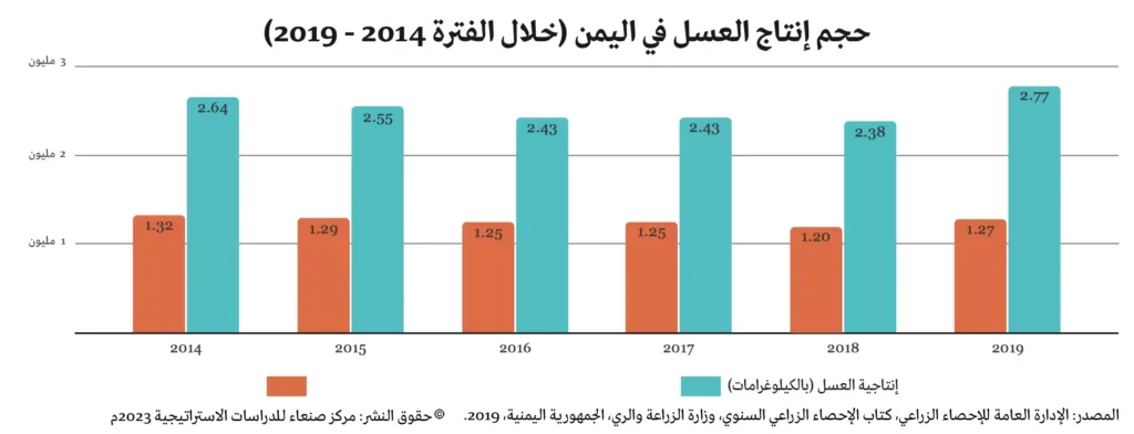 حتى وقت قريب، كان إنتاج العسل يُعد تجارة مربحة لليمنيين، حيث صُنف العسل عام ٢٠٠٣ كأحد السلع الاستراتيجية الخمس التي أعلنت عنها الحكومة اليمنية لأهميتها في رفد اقتصاد البلاد. عام ٢٠٠٢، قدرت الإحصائيات الرسمية لوزارة الزراعة اليمنية عدد النحالين اليمنيين بـ ٨١،٧٣٤ نحال. [٨] تُعد مهنة النحالة اليوم واحدة من أهم مصادر الدخل التي تعيش عليها الكثير من الأسر ذات الدخل المحدود في اليمن (لا سيما في المناطق الريفية). قدّر تقرير للأمم المتحدة صدر عام ٢٠٢٠ أن حوالي ١٠٠،٠٠٠ أسرة تعمل في قطاع إنتاج العسل، مشيرا إلى إقبال عدد متزايد من الشباب اليمني على هذه التجارة.[٩] تسببت الحرب منذ اندلاعها في تغيير خصائص قطاع تربية النحل، من قطاع يهيمن عليه نحالون متمرسون توارثوا قواعد المهنة عن آبائهم، [١٠] إلى قطاع يشهد إقبالاً متزايداً من العديد من السكان المستجدين في هذا المجال، بما في ذلك الموظفين الحكوميين ممن لم يتلقوا رواتبهم بانتظام منذ اندلاع النزاع وسعوا إلى الانخراط في أنشطة جديدة مدرة للدخل للعيش عليها، فضلا عن النازحين داخليا ممن لجأوا إلى تربية النحل بعد انتقالهم من المدن إلى المناطق الريفية حيث تتواجد المراعي النحلية.[١١] ورغم أن هذه التحولات في القطاع قد تبدو واعدة من الناحية النظرية، ينظر النحالون التقليديون إلى التغييرات السريعة التي أحدثتها الحرب في قطاع تربية النحل كتهديد مطرد لهذه المهنة العتيقة.