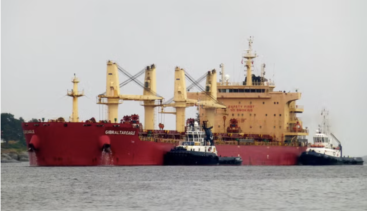The US-owned carrier ship Gibraltar Eagle, which was targeted by Houthi rebels on Monday (AP)